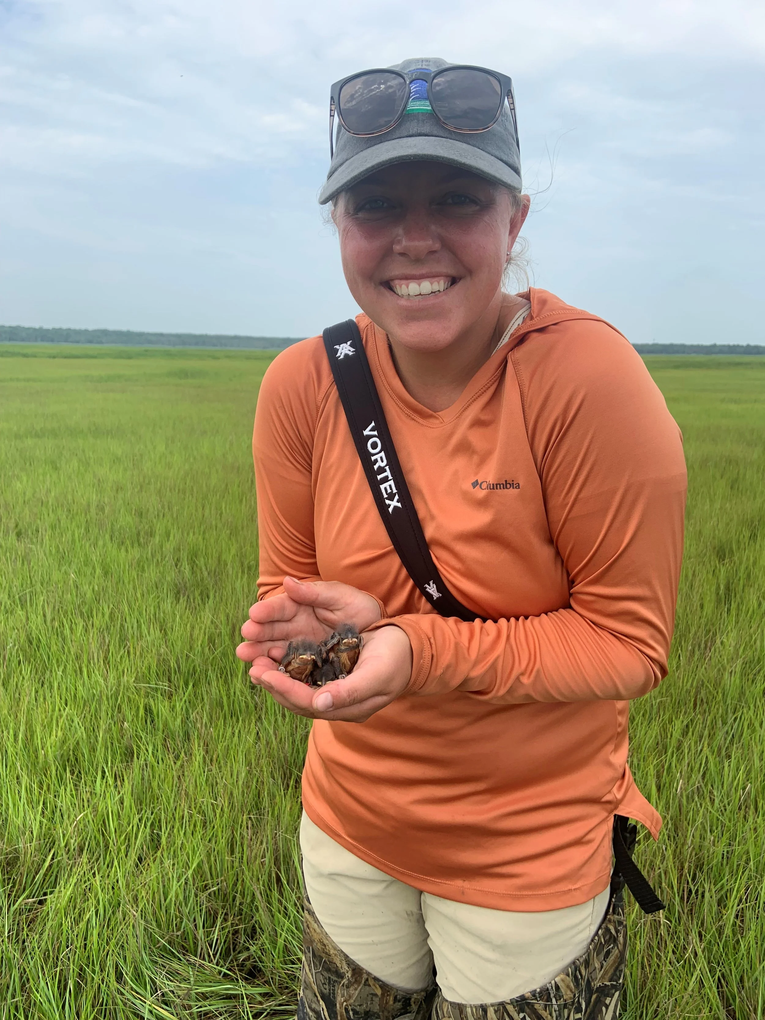 Growing up in Morehead City, Marae was surrounded by water and marine based careers. She received her B.S in Biology from Appalachian State and her Ph.D. in the Biology and Marine Biology Department at the University of North Carolina Wilmington. She studied winter population biology and impacts of sea level rise on Saltmarsh, Nelson’s, and Seaside Sparrows in tidal marshes in Southeastern North Carolina